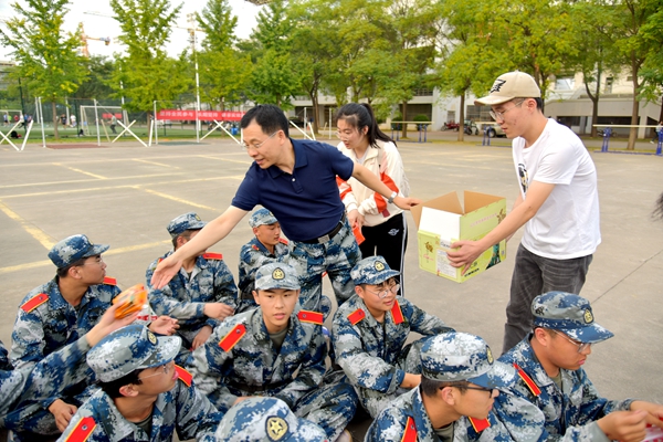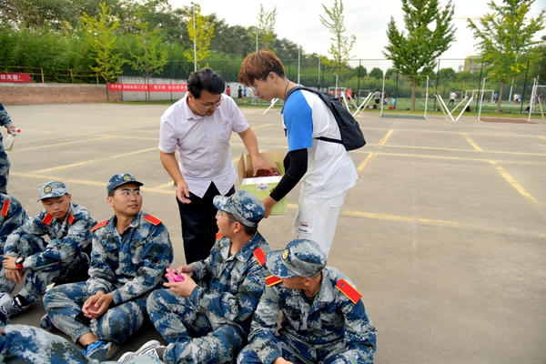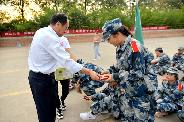 期间,院领导们给刚刚结束十多公里拉练的同学分发慰问品,对同学们训练时饱满的热情和昂扬的斗志予以充分肯定。